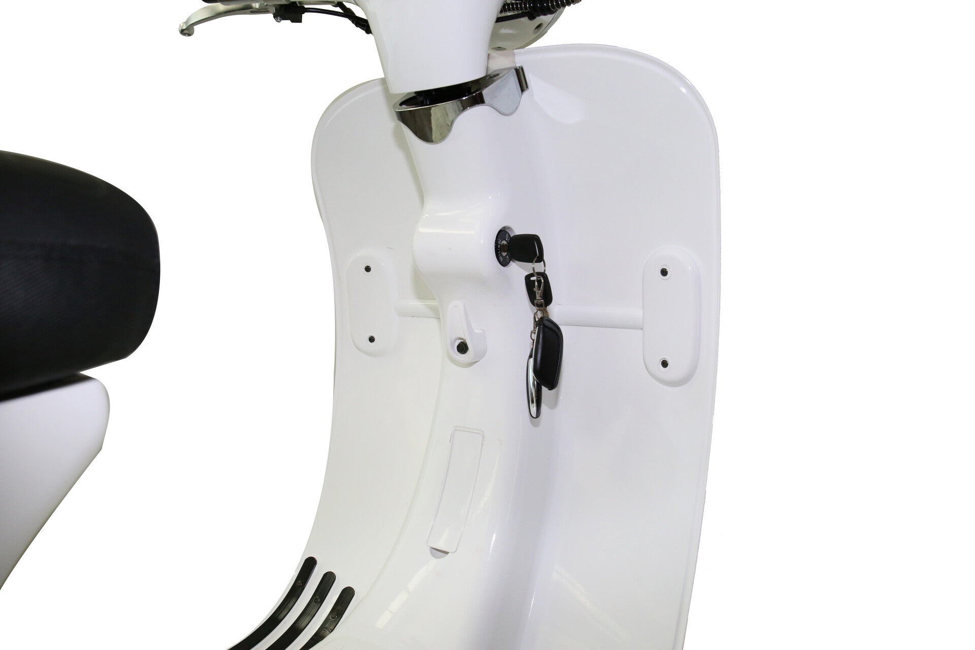 It has a step-through frame that women could ride it in skirts, and its concealed engine – tucked under the seat